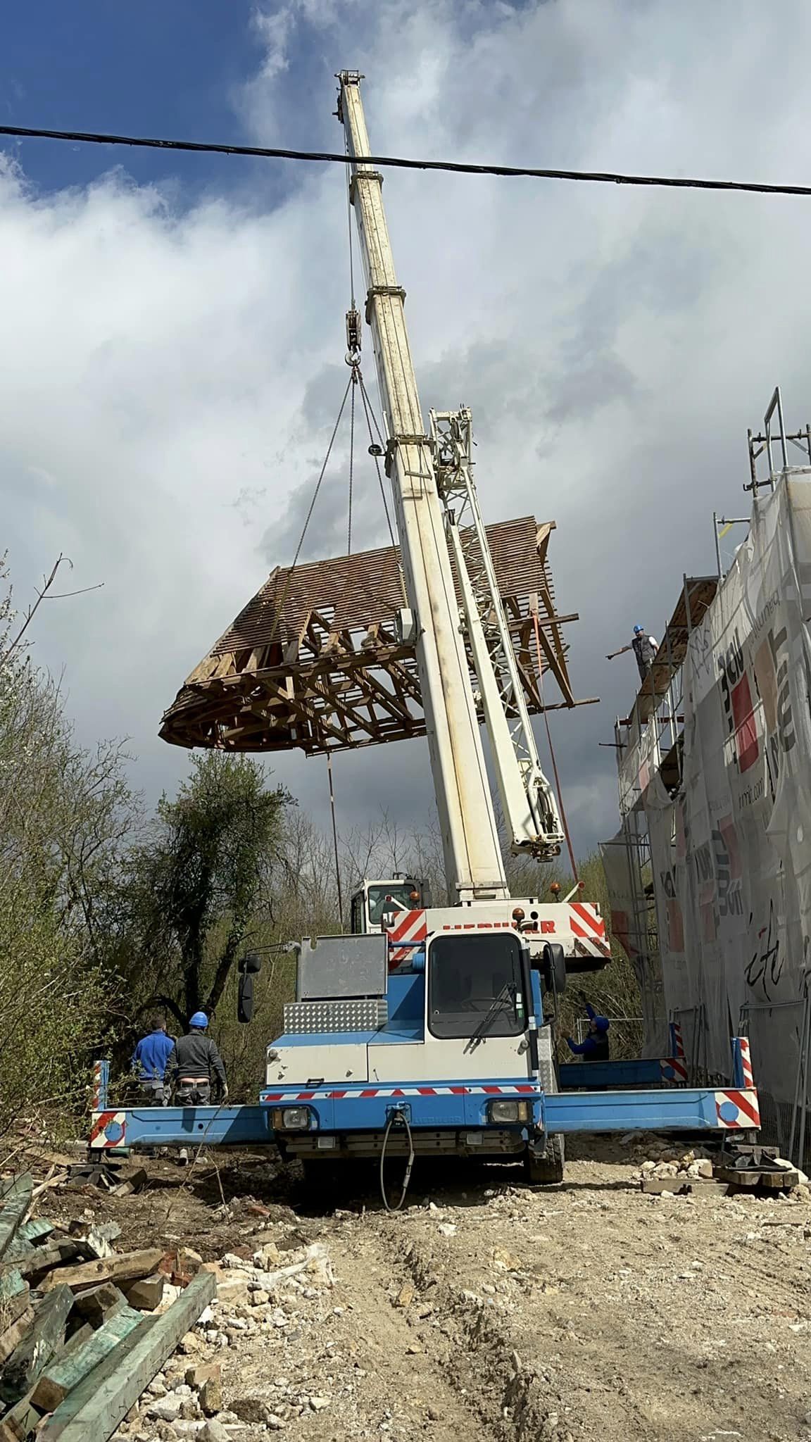Danas smo, u sklopu obnove gradske uprave Grada Petrinje teško oštećene u potresu 2020. godine sudjelovali u podizanju dijelova krovišta.